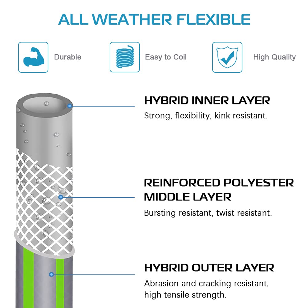 1, 5/8" Hochleistungs-Gartenwasserschlauch 2. Innendurchmesser ist 15 mm, Dicke ist 3 mm 3. An beiden Seiten befindet sich ein 3/4" Messing-Außengewinde und ein drehbarer Innengewindeanschluss 4. Hergestellt aus einer Mischung aus Gummi und PVC für hohe Beanspruchung, geringes Gewicht und flaches Liegen 5. Einfacher Anschluss an Wasserhahn oder Gartenschlauchdüse. 6. Mit Knickschutz an beiden Seiten für eine gute Nutzung. 7. Der maximale Wasserdruck beträgt 400 Pis als Stoßdruck 6, kundenspezifische Farbe für Schlauch ist willkommen 7, kundenspezifische paket ist willkommen
